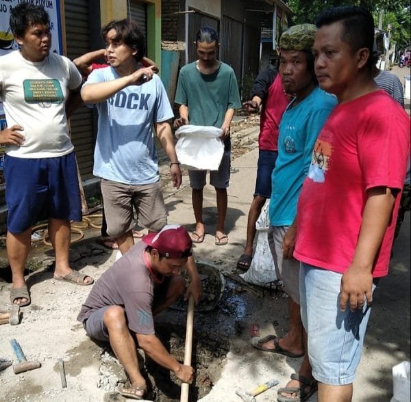 Diketahui sebelumnya, lubang di tengah jalan itu sebenarnya pernah dibongkar warga secara swadaya untuk dibuat semacam bak kontrol saluran air di tengah jalan untuk membersihkan sumbatan sampah. (Humas/04)