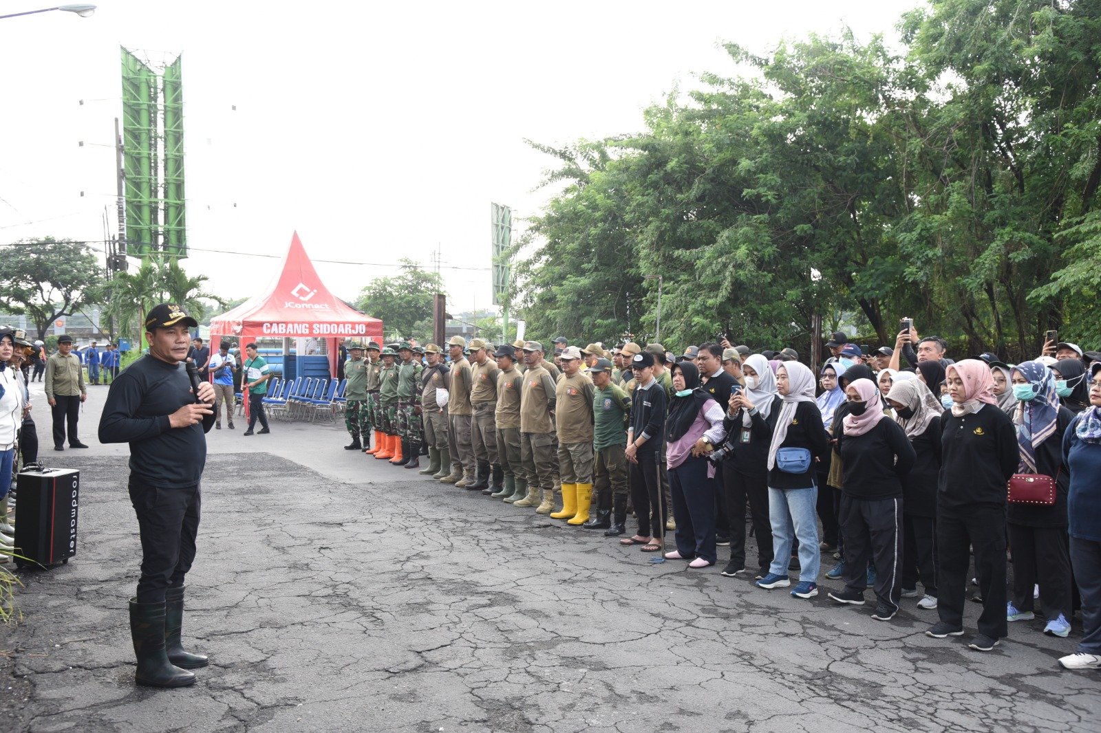 “Atas nama Plt. Bupati, saya mengucapkan maturnuwun sanget atas dukungan panjenengan yang hari ini, meskipun hari libur, tetap berkenan bekerja bersama menyelesaikan persoalan banjir di Kabupaten Sidoarjo,” ucapnya.
