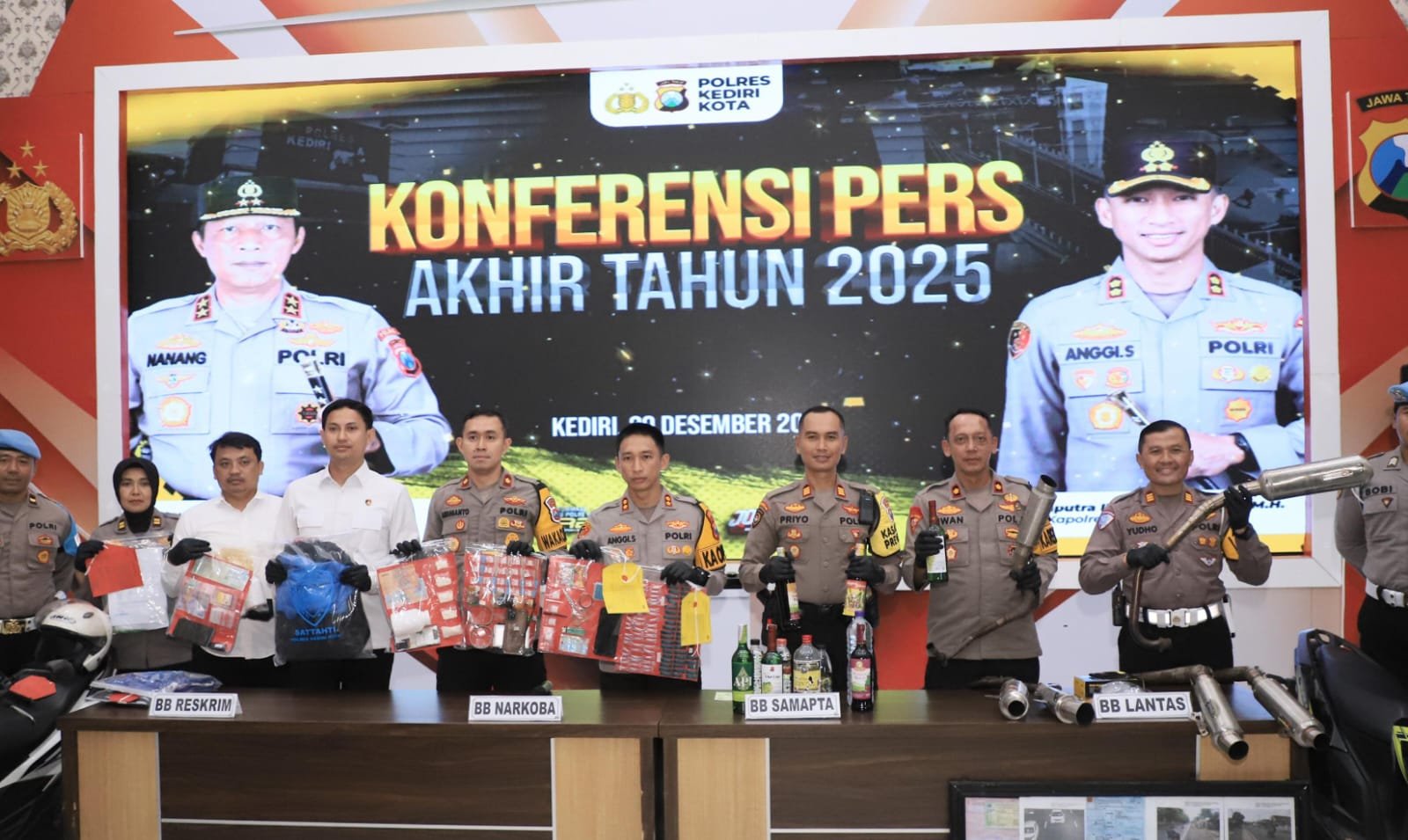 Kegiatan berlangsung di Gedung Rupatama Polres Kediri Kota, Senin (29/12/2025) dihadiri Kapolres Kediri Kota AKBP Anggi Saputra Ibrahim, S.H., S.I.K., M.H., Waka Polres Kompol Yanuar Rizal Ardianto, Kabag Ops Kompol Iwan Setyo Budhi, Kasat Reskrim AKP Cipto Dwi Leksana, Kasat Lantas AKP Tutud Yudho Prastyawan, Kasat Narkoba AKP Endro Purwandi, Kasat Samapta AKP Priyo Hadistyo, serta Kasi Humas Iptu Sundari.