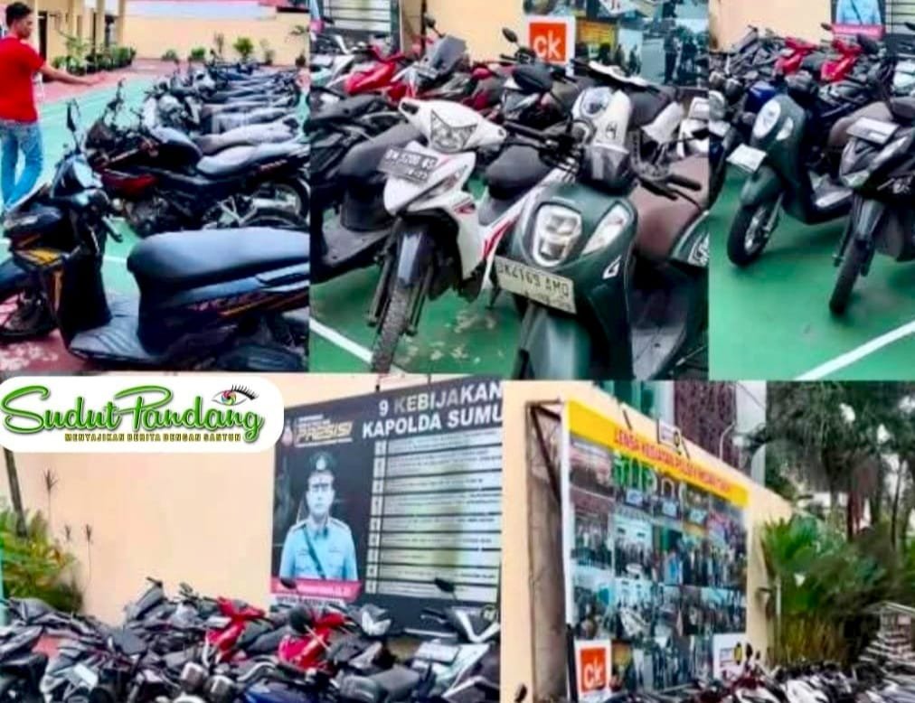 Puluhan sepeda motor hasil curanmor diamankan Polsek Medan Timur.(Foto: Indira/Sudutpandang.id
