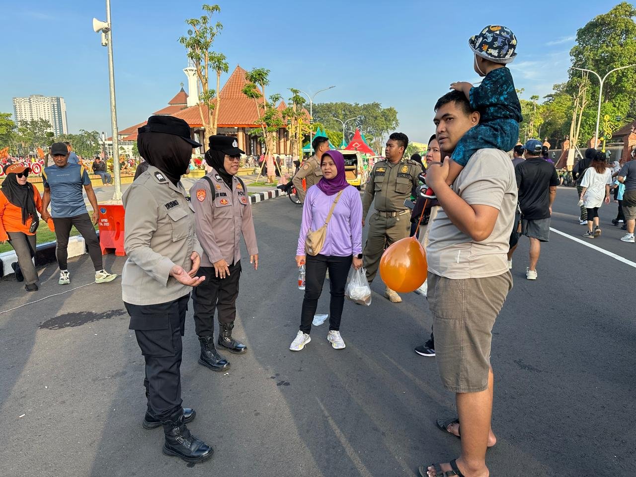 SIDOARJO, SUDUTPANDANG.ID – Sejumlah personel Polisi Wanita (Polwan) dari Polresta Sidoarjo turun langsung mengamankan kegiatan Car Free Day (CFD) di kawasan Alun-alun Sidoarjo, Minggu (26/4/2026). Kegiatan tersebut dipimpin oleh AKP Watini sebagai bentuk pelayanan kepada masyarakat.