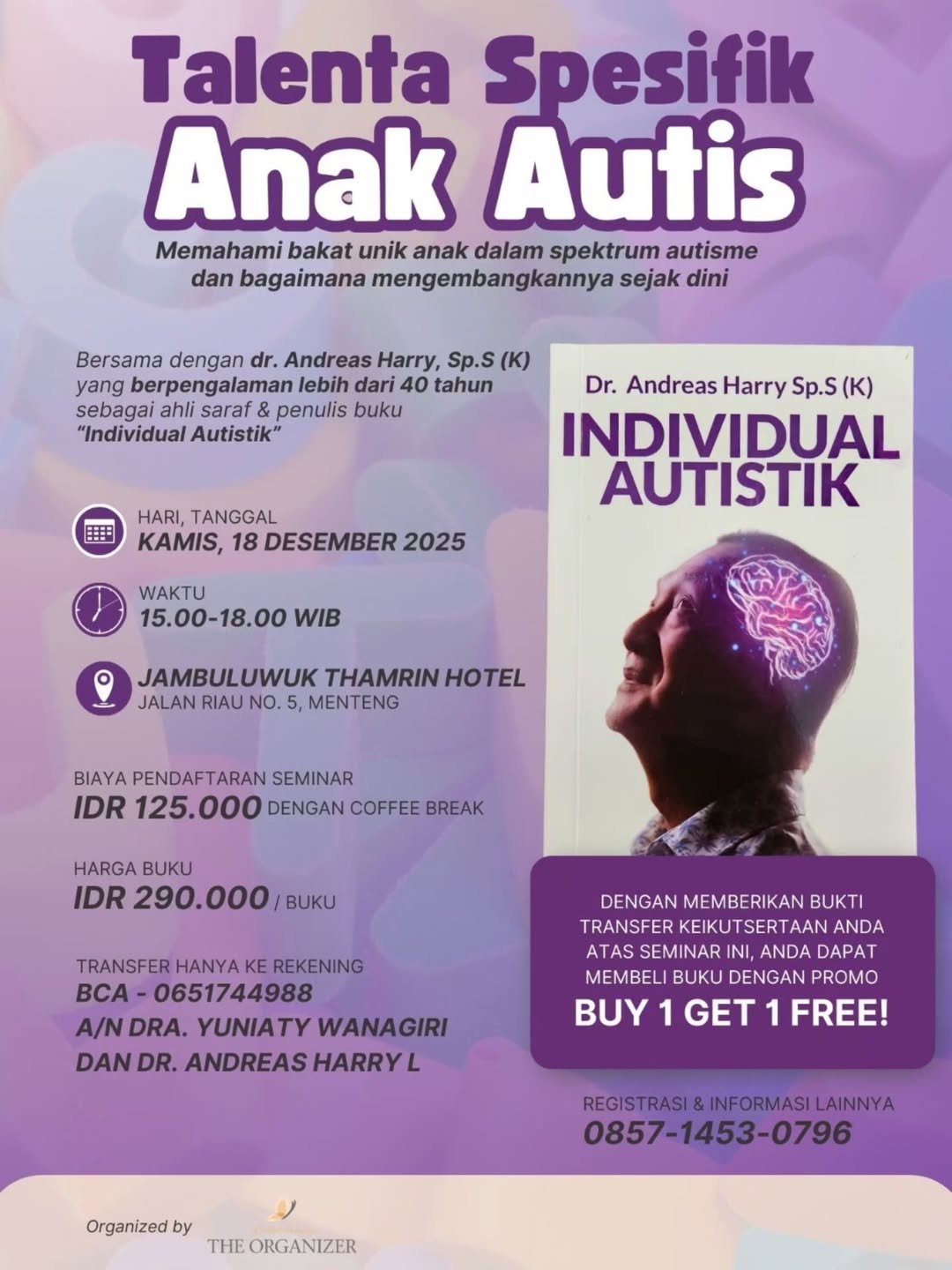 Flyer seminar dan bedah buku "Individual Autistik" karya dr Andreas Harry Lilisantosa, Sp.S(K). FOTO: HO-panpel seminar