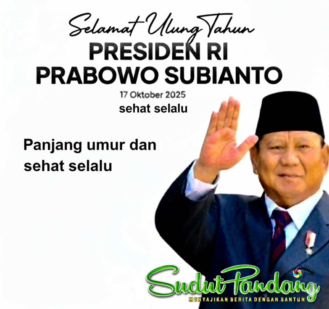 JAKARTA, SUDUTPANDANG.ID – Presiden Prabowo Subianto merayakan hari ulang tahun pada Jumat (17/10/2025). Dalam momentum tersebut, Prabowo menyampaikan rasa syukur atas usianya yang kini genap 74 tahun. Is juga mengucapkan terima kasih kepada masyarakat atas doa dan perhatian yang diberikan kepadanya.