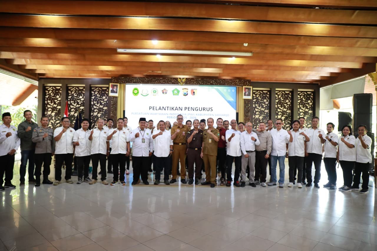 SIDOARJO – JATIM | SUDUTPANDANG.ID – Kolaborasi antara pers dan pemerintah menjadi sorotan utama pada pelantikan Pengurus Persatuan Wartawan Indonesia (PWI) Sidoarjo periode 2025-2028 yang digelar di Pendopo Delta Wibawa pada Senin (20/10/2025). Acara yang mengusung tema “Pers Kolaborasi Mewujudkan Sidoarjo Hebat, Baik, dan Bermartabat” ini menekankan pentingnya sinergi untuk mendorong pembangunan daerah.