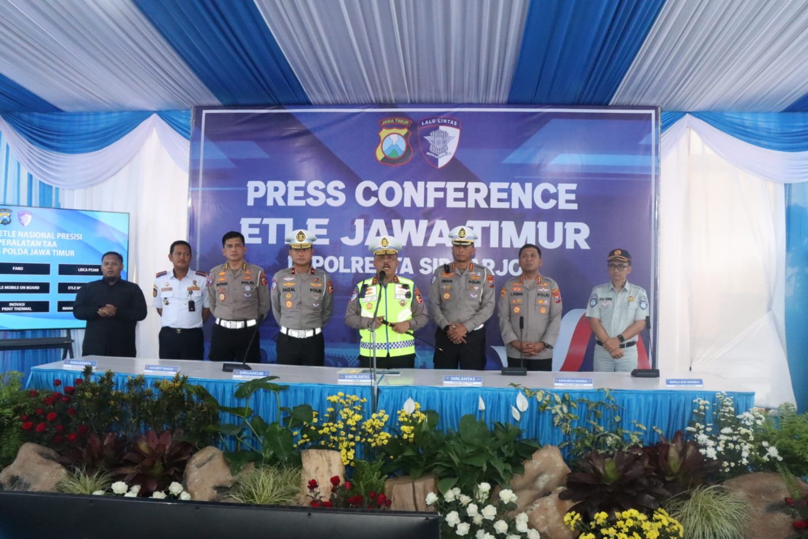 Kokarlantas Polri dalam konferensi pers ETLE Jawa Timur di Polresta Sidoarjo (Foto Istimewa)