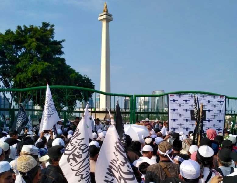 Massa Reuni Akbar 212 memadati Kawasan Monas, Jakarta Pusat, Selasa (2/1/2025).(Foto: Naba/Sudutpandang.id)