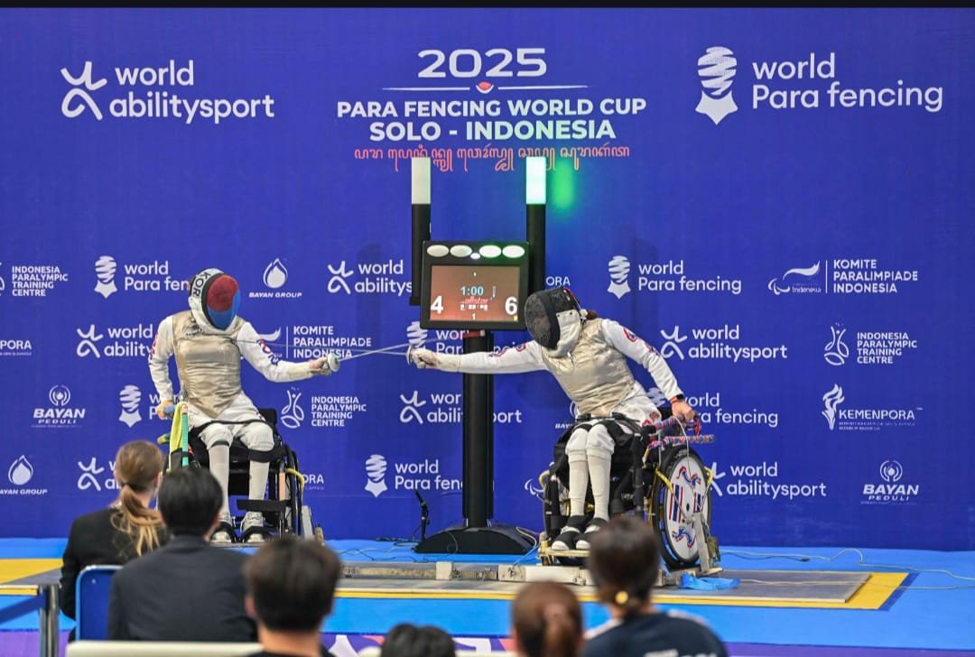 SOLO, SUDUTPANDANG.ID – Tim anggar kursi roda Indonesia kembali menorehkan hasil membanggakan pada hari kedua Para Fencing World Cup 2025 yang berlangsung di GOR Indoor Manahan, Kota Solo, Selasa (16/9/2025). Atlet muda Ryo Afandi sukses menembus peringkat keenam di nomor sabre male senior individual B, meski langkahnya terhenti di babak delapan besar.