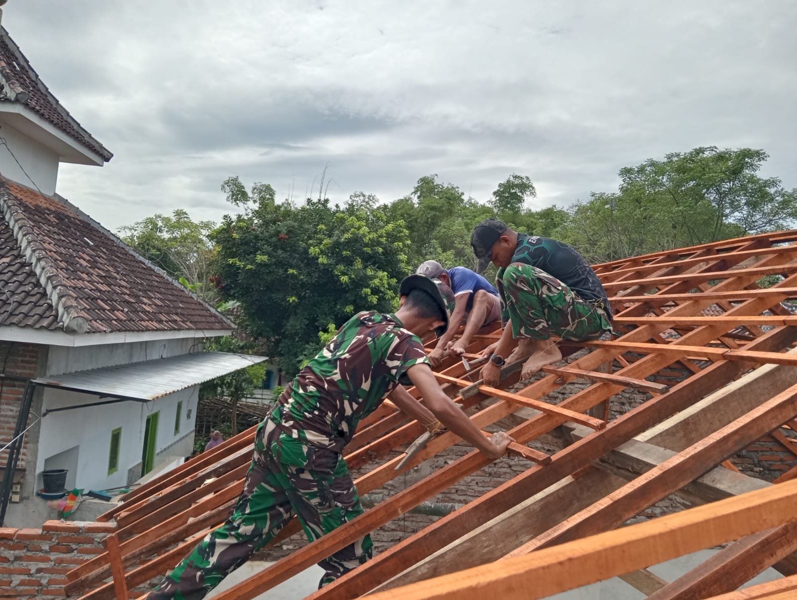 Dalam kegiatan tersebut, Koptu Trihandoko bersama warga tampak kompak memasang kayu bagian atap rumah. Tahapan ini menjadi penanda bahwa struktur utama bangunan telah dikerjakan memasuki tahap penyempurnaan.