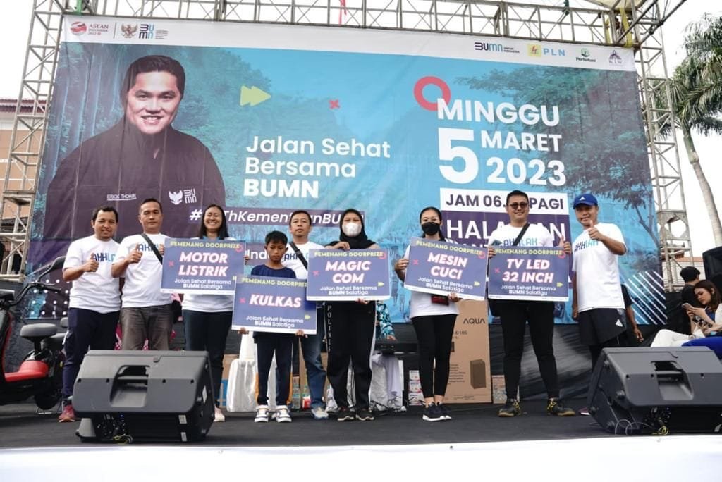 SALATIGA, SUDUTPANDANG.ID –Memperingati perayaan HUT ke-25, BUMN menggelar acara ‘Jalan Sehat Bersama BUMN’ yang diselenggarakan oleh PT PLN (Persero). Dengan diikuti 1.700 peserta dan berbagai program produk BUMN, di Kota Salatiga, Jawa Tengah pada Minggu (5/3).