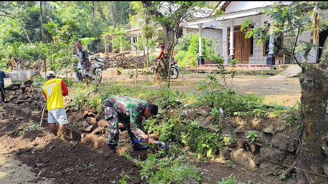 PASURUAN – JATIM | SUDUTPANDANG.ID –Dalam upaya mendukung pembangunan infrastruktur desa serta mencegah terjadinya longsor, Sertu Desta Babinsa Koramil 0819/17 Pasrepan melaksanakan kegiatan karya bakti (karbak) Pembuatan Tanggul Penahan Tanah (TPT) di Dusun Duren RT 01 RW 04, Desa Mangguan, Kecamatan Pasrepan, Kabupaten Pasuruan. Jawa Timur. Minggu, (19/10/2025)