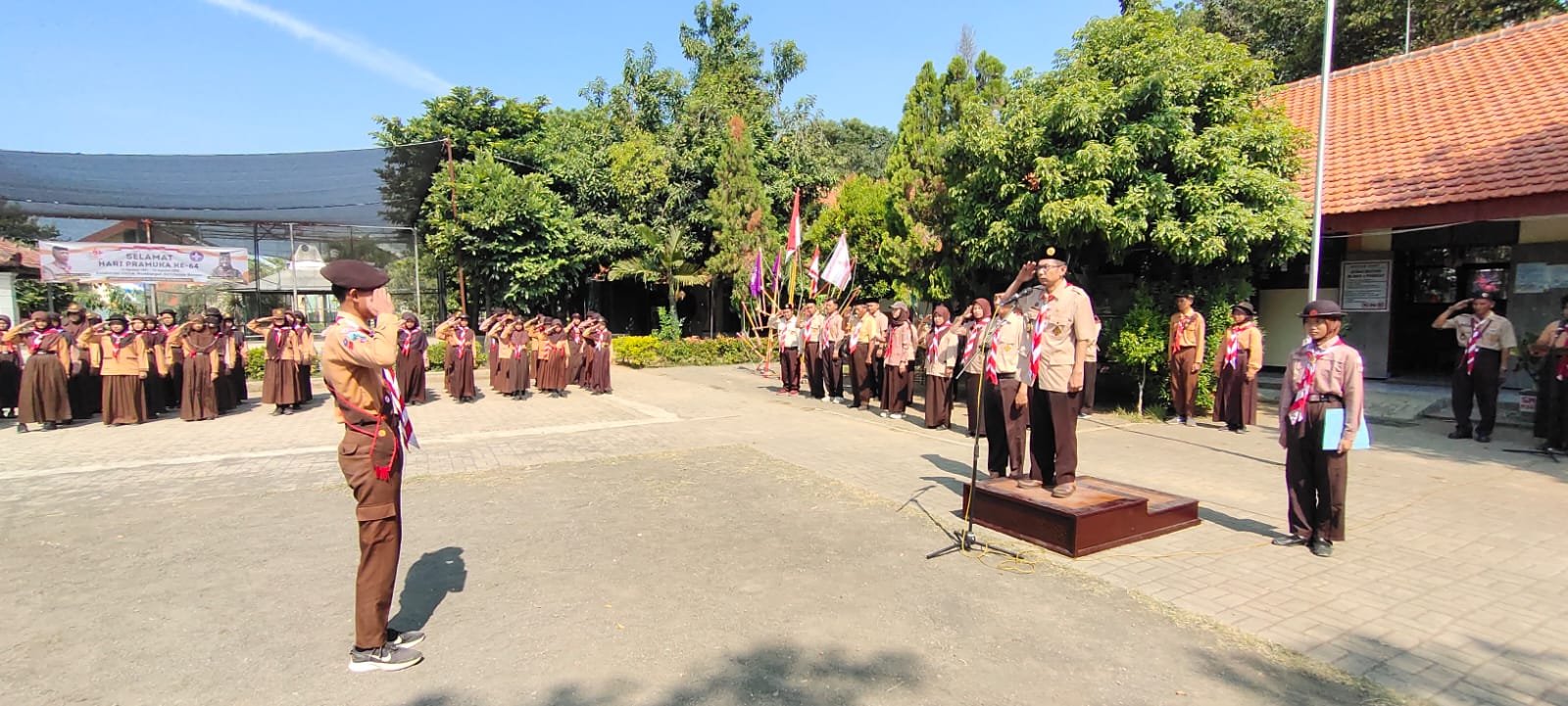 Foto-foto yang dibagikan oleh pihak sekolah menunjukkan antusiasme tinggi dari para pembina dan siswa. Beberapa dokumentasi memperlihatkan barisan Pramuka lengkap dengan bendera regu, sesi penyampaian materi, serta pelatihan keterampilan di lapangan. Suasana tampak penuh semangat dan disiplin, mencerminkan semangat Cerdas Berkarakter yang diusung dalam tema kegiatan.