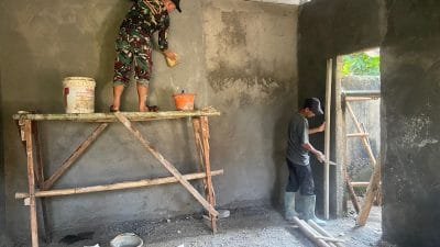 KOTA BEKASI, SUDUTPANDANG.ID –Satgas TMMD ke-116 bersama masyarakat bersama-sama mengerjakan penyelesaian plesteran aci dinding rumah…
