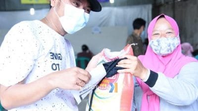 “Setiap warga yang mengikuti vaksinasi akan mendapatkan satu karung beras seberat 5 kg melalui doorprize….