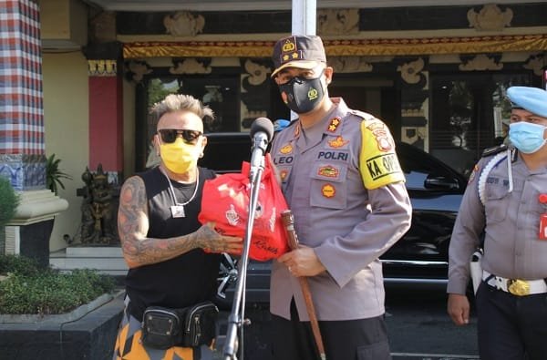 BADUNG, SUDUTPANDANG.ID – Kapolres Badung AKBP Leo Dedy Defretes, didampingi Wakapolres Kompol Ni Putu Utariani, menerima 500 paket sembako dan ratusan masker dari Andi Opa Gaul bersama klub yang akan dilepas untuk segera membagikan kepada masyarakat terdampak wabah Covid-19, Sabtu (7/8) pagi pukul 09.30 Wita.