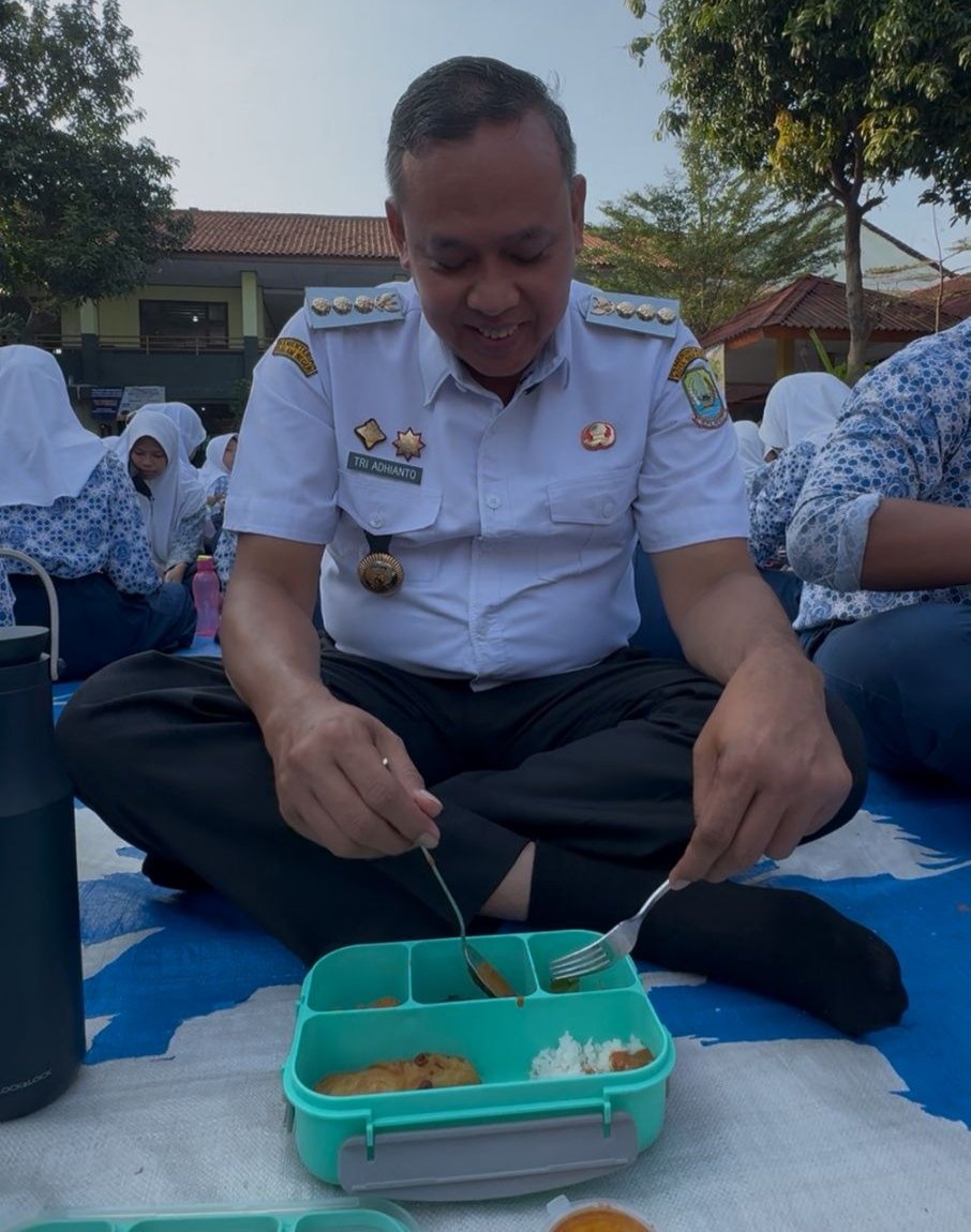 “Saya ingin merasakan sendiri seperti apa suasana makan bersama para siswa. Hari ini lebih spesial karena saya bawa bekal dari istri,” ujar Tri sambil tersenyum.