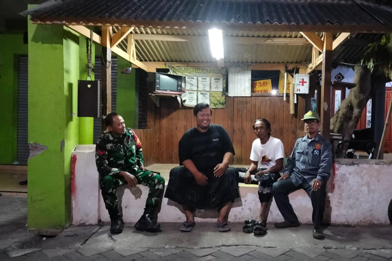Patroli kali ini menyasar Pos Keamanan Lingkungan RT.02 RW.02, di mana Koptu Akhmad Suhadak bersama anggota Linmas bertemu dengan Bapak Eko, salah satu warga yang sedang melaksanakan tugas jaga. Dalam kesempatan tersebut, Koptu Ahmad Suhandak menyampaikan dan himbauan petugas keamanan agar melaksanakan tugas dengan penuh tanggung jawab dan selalu menjaga kekompakan dalam melaksanakan patroli secara bergiliran.