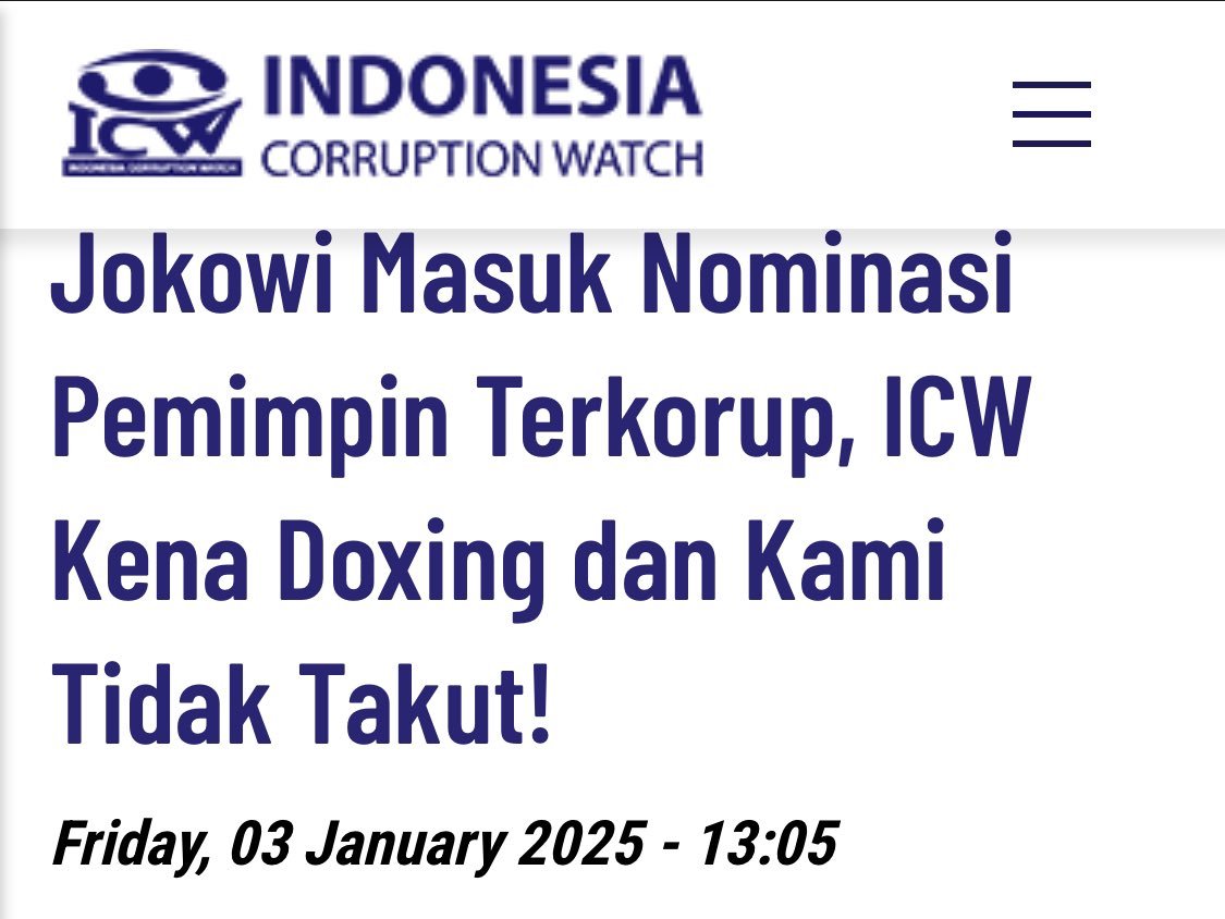 Dikutip dari tempo.co dan juga laman antikorupsi.org, Koordinator ICW Agus Sunaryanto dalam dalam keterangannya pada Jumat (3/1/2025) di Jakarta menjelaskan dugaan doxing tersebut terjadi setelah seorang peneliti ICW merespons rilis dari OCCRP yang menominasikan Jokowi sebagai pemimpin dengan kategori “Kejahatan Terorganisasi dan Korupsi 2024”.