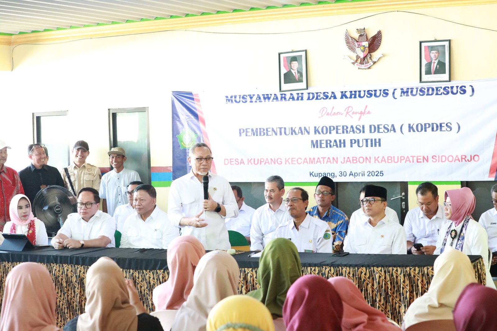 SIDOARJO – JATIM | SUDUTPANDANG.ID – Wakil Bupati Sidoarjo, Hj. Mimik Idayana, mendampingi kunjungan kerja (kunker) Menteri Koordinator Bidang Pangan, Zulkifli Hasan, dalam rangka peninjauan Musyawarah Desa Khusus (Musdesus) pembentukan Koperasi Desa (Kopdes) Merah Putih Tambak Rumput Laut di Desa Kupang, Kecamatan Jabon, pada Rabu (30/4/2025). Kunjungan ini turut dihadiri oleh Menteri Desa dan Pembangunan Daerah Tertinggal, Wakil Menteri Desa, serta Wakil Menteri Kelautan dan Perikanan.