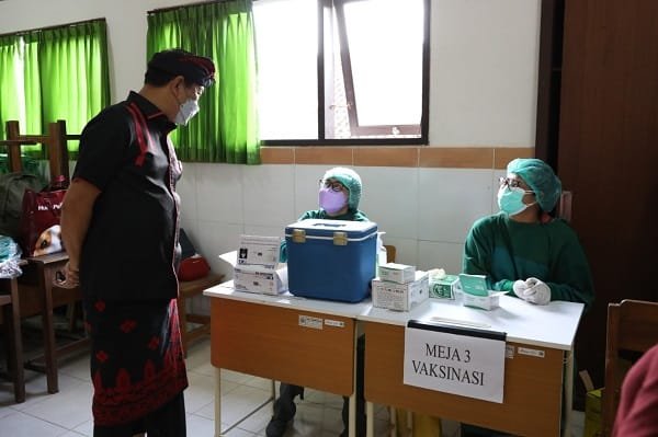 Wabup Badung dalam kesempatan tersebut nampak berkeliling memantau proses pelaksanaan vaksinasi sembari berbincang dengan warga dan petugas. Hal ini dilakukan untuk memberikan semangat dan motivasi dalam melaksanakan tugas supaya kegiatan program ini berjalan sesuai yang diharapkan bersama.