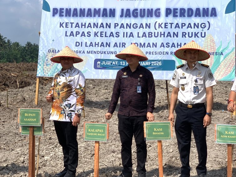 Kegiatan tanam jagung perdana tersebut ditandai dengan penanaman bibit secara simbolis oleh Wakil Bupati Asahan bersama Kalapas Labuhan Ruku, Kalapas Tanjung Balai, jajaran petugas Lapas, serta para tamu undangan.