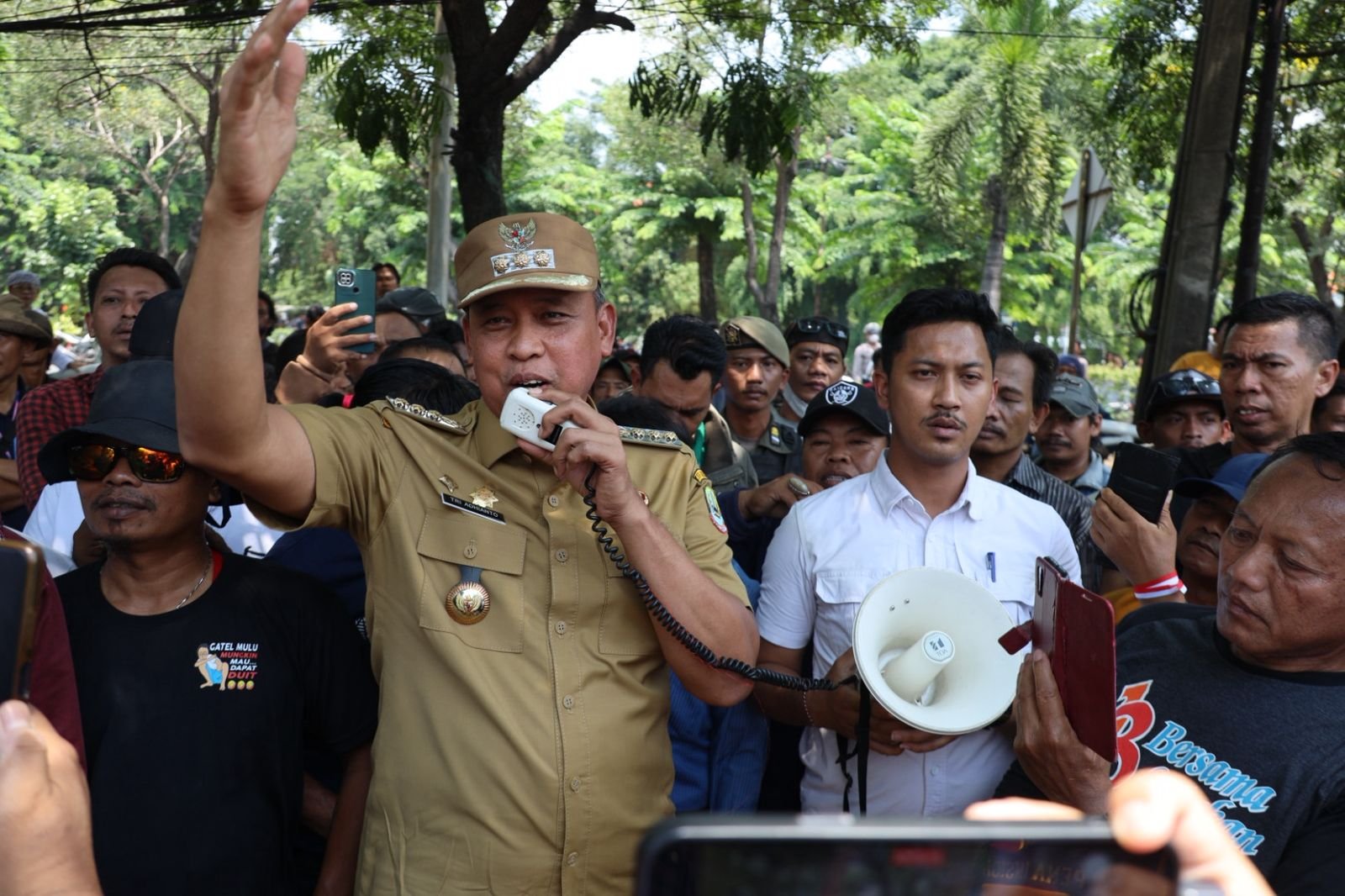 “Suara rakyat tidak boleh diabaikan. Dari aspirasi itulah lahir kebijakan yang berpihak kepada masyarakat. Pemerintah hadir bukan untuk menjaga jarak, melainkan untuk berjalan beriringan dengan warganya,” ujar Tri di hadapan peserta aksi.