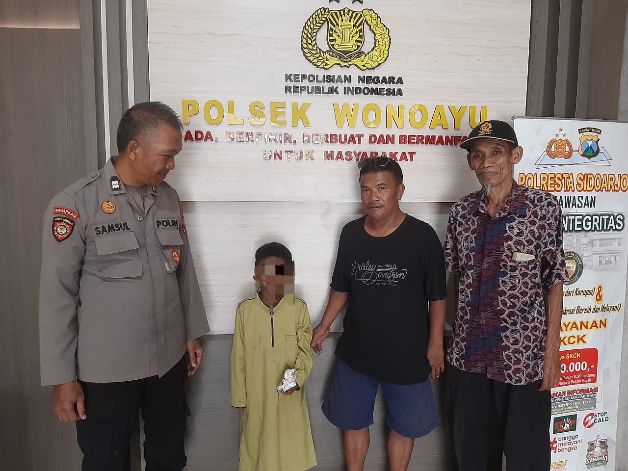 Kapolsek Wonoayu Polresta Sidoarjo, AKP Krisna Hadi Widyanto, menjelaskan bahwa jajaran Polsek langsung mengambil langkah cepat sesuai standar penanganan anak temuan.