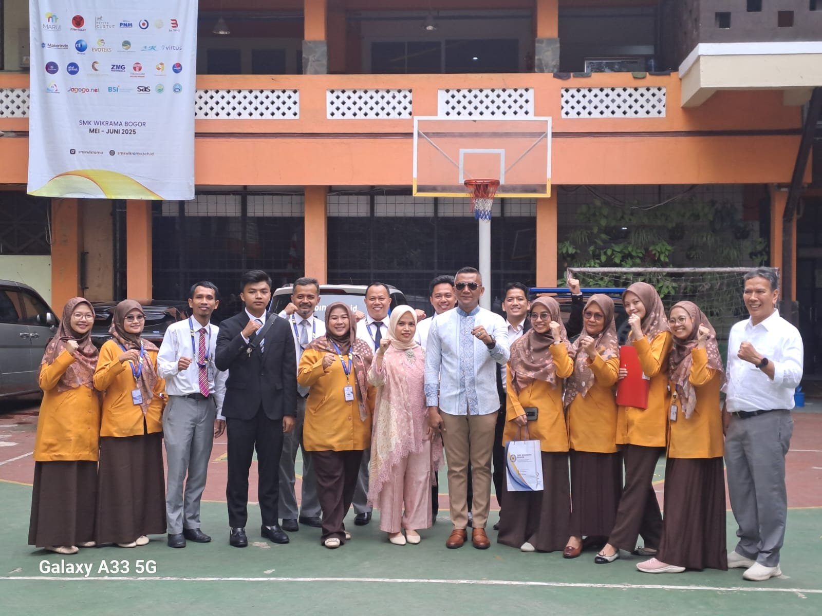 Wakil Wali Kota (Wawali) Bogor, Jawa Barat, Jenal Mutaqin, SH (tujuh dari kiri) berfoto bersama dengan para guru di SMK Wikrama Kota Bogor, usai kegiatan Penyerahan Laporan Hasil Belajar Angkatan ke-27 sekolah itu di kawasan Tajur, Kota Bogor, Kamis(19/6/2025). FOTO: HO-SMK Wikrama Bogor