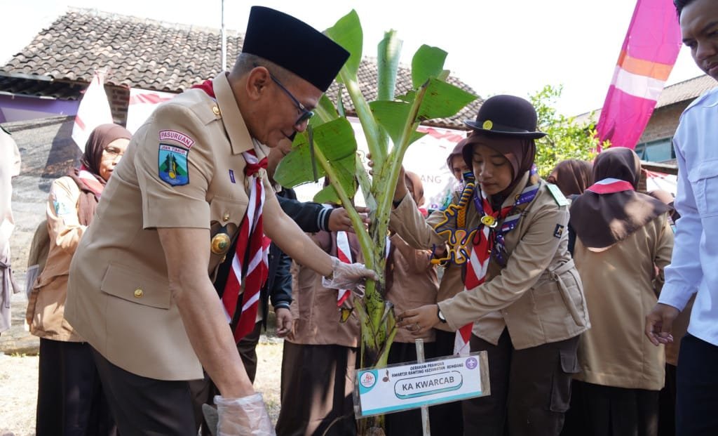 Sementara itu, seusai Apel digelar, kegiatan selebrasi peringatan Hari Pramuka dilanjutkan dengan gerakan penanaman bibit buah.