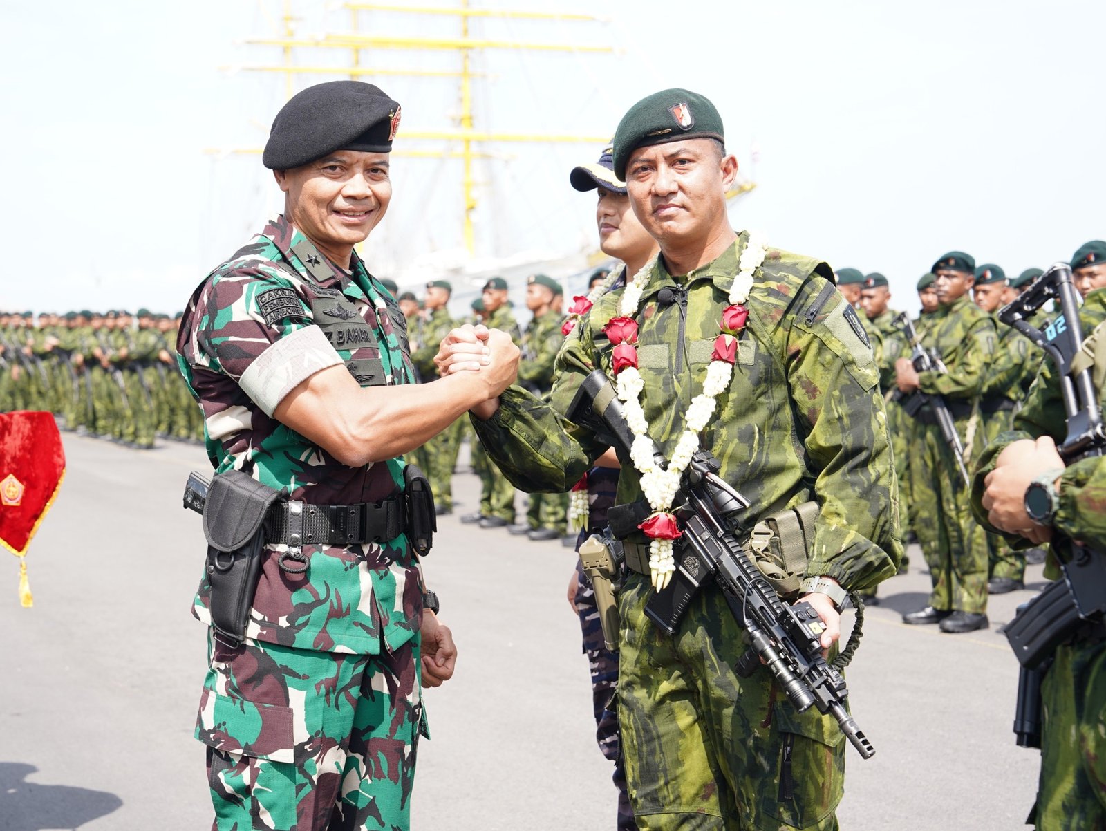 SURABAYA-JATIM|SUDUTPANDANG.ID – Kasdam V/Brawijaya Brigjen TNI Zainul Bahar, S.H., M.Si., memimpin Upacara Purna Tugas Satgas Pamtas RI-PNG Mobile Yonif 500/Sikatan di Dermaga Madura Koarmada II Ujung Surabaya, Jawa Timur, Sabtu (14/2/2026).